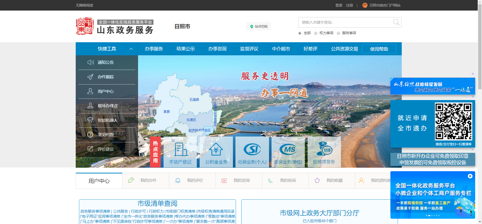 1.在山东政务服务网(日照站)点击“办事服务”模块。